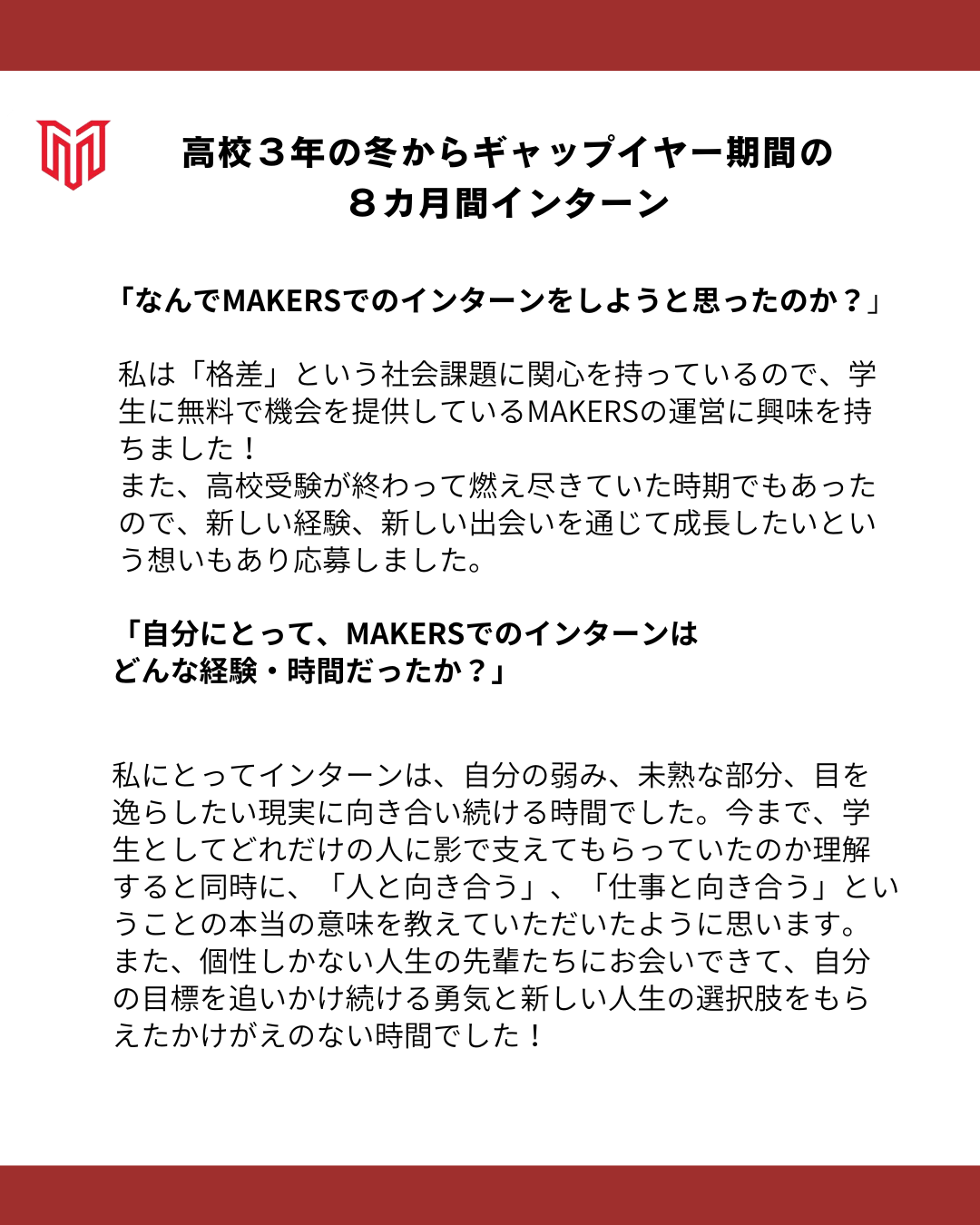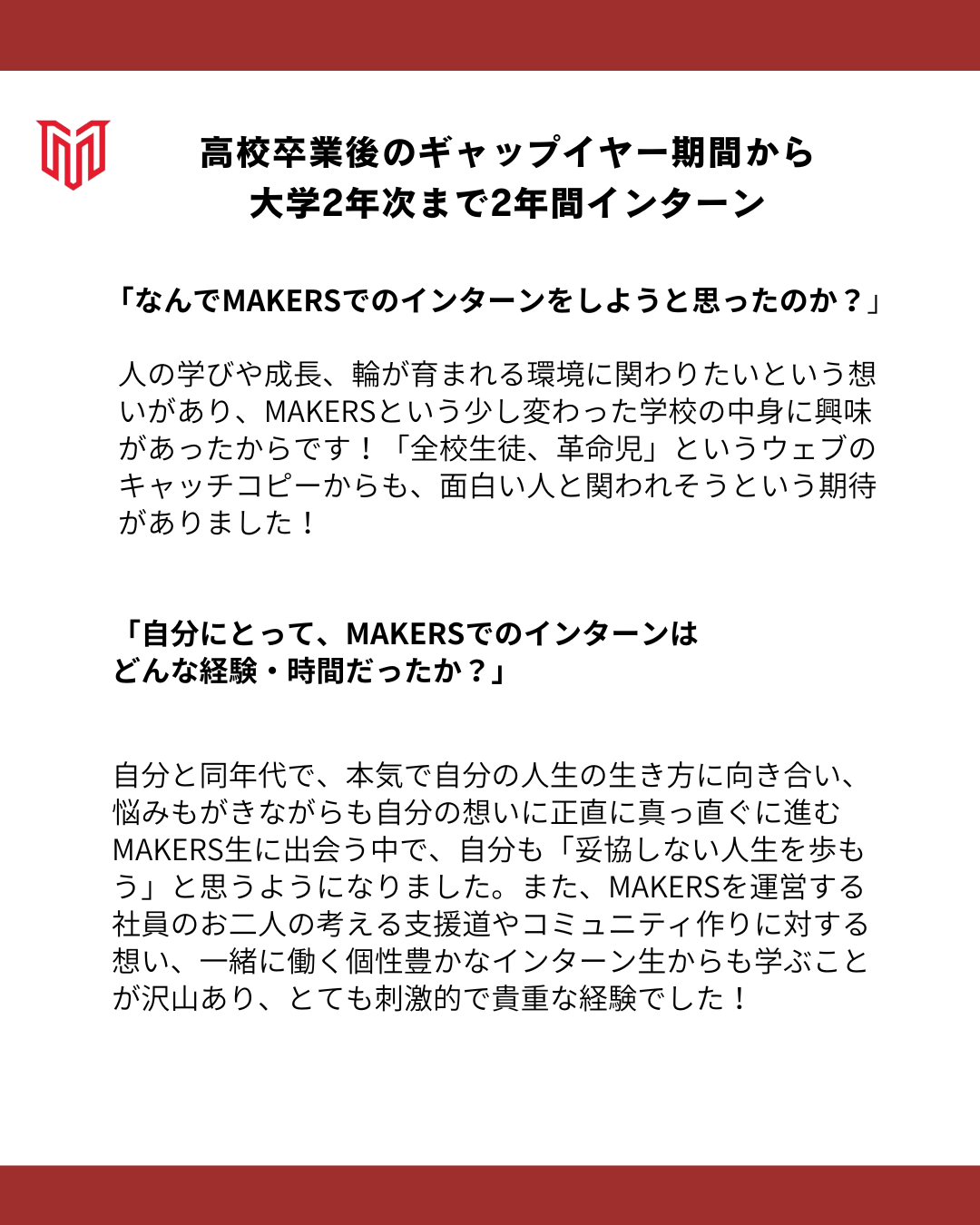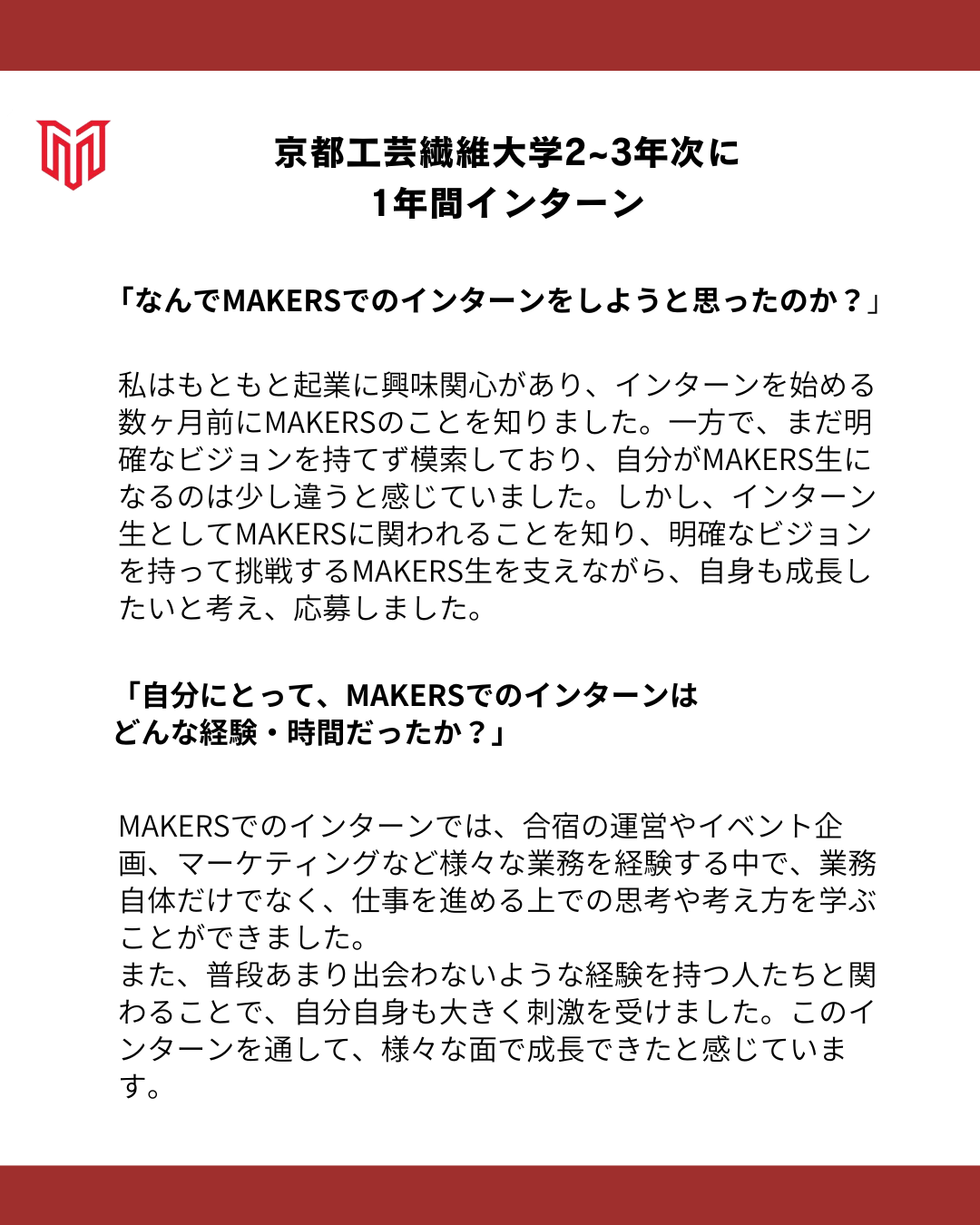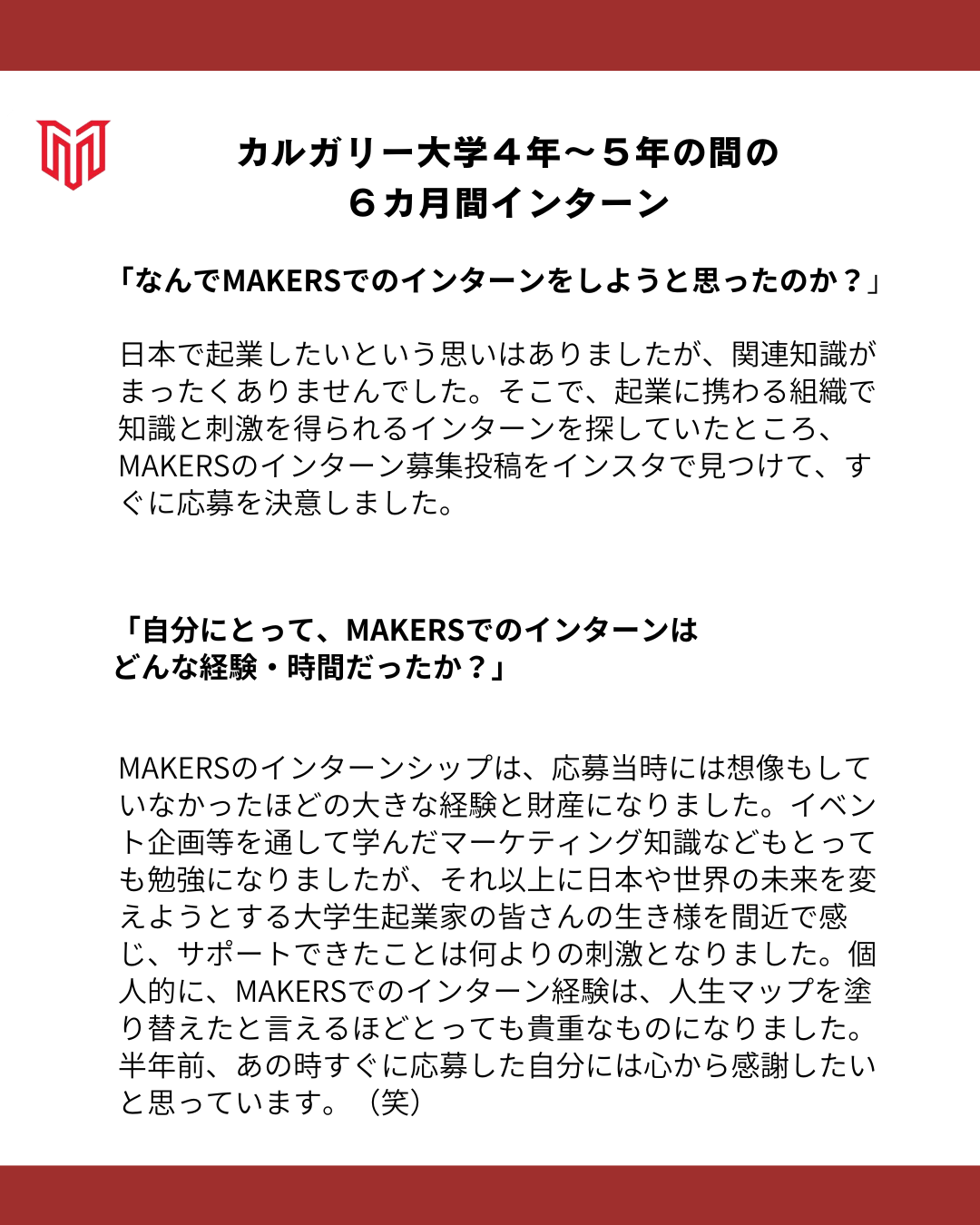 >>メール件名:MAKERS UNIVERSITY11期インターン応募について